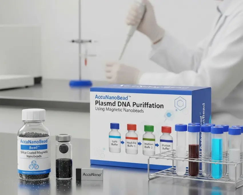 AccuNanoBead™ is a next-generation magnetic nanoparticle solution designed for high-performance DNA, RNA, and protein purification. Engineered with superparamagnetic properties, these beads offer rapid, efficient, and reproducible isolation of nucleic acids and biomolecules, making them ideal for PCR, NGS, proteomics, and other molecular biology applications. Compatible with automated platforms and manual workflows, AccuNanoBead™ ensures maximum yield, minimal sample loss, and exceptional purity, helping researchers achieve reliable and reproducible results in every experiment.